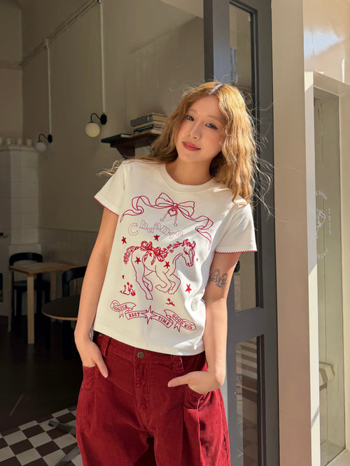 CCYE ORIGINAL DESIGN APPLIQUÉ BOW SHORT SLEEVE TOP -